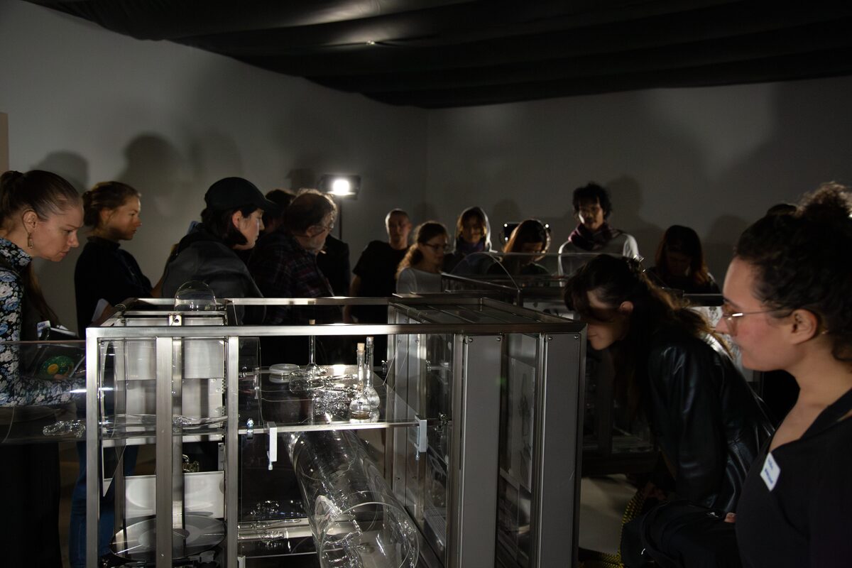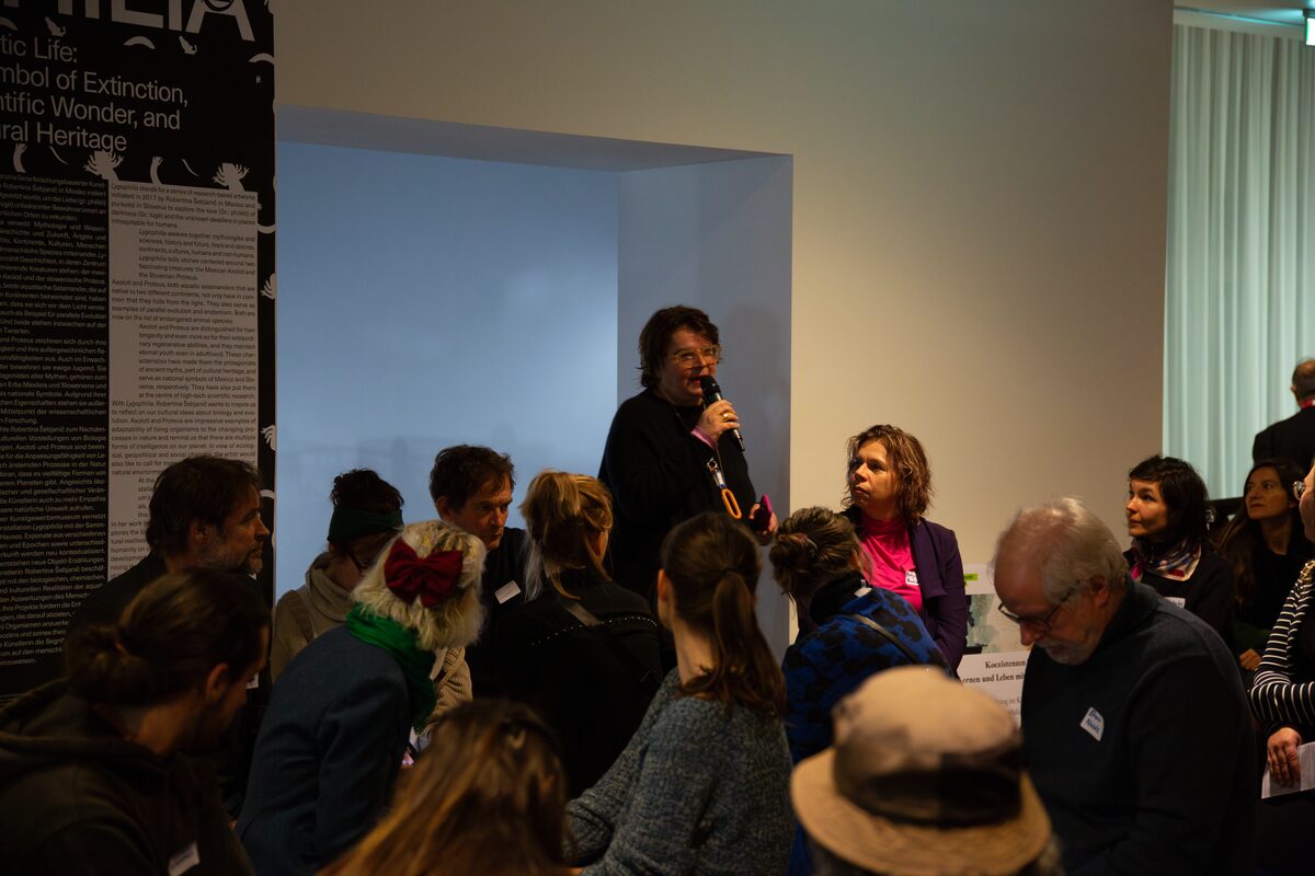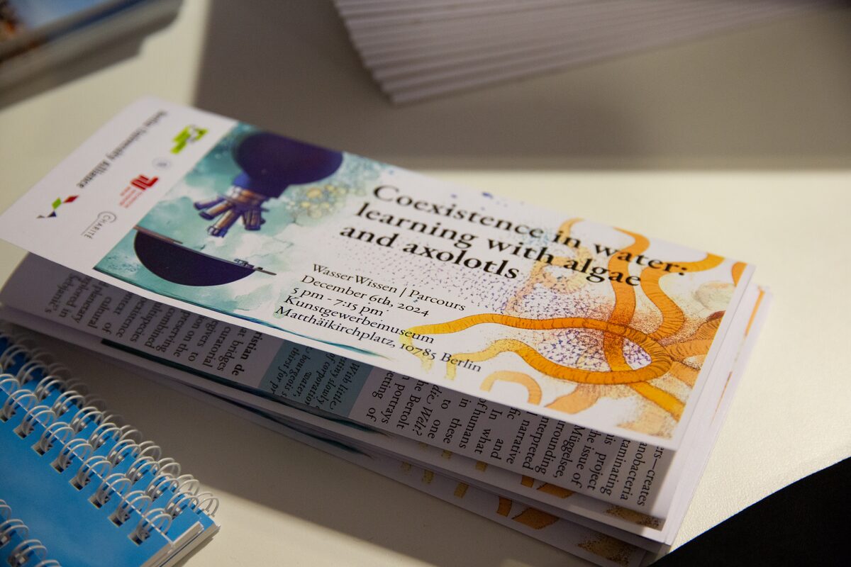 Dieser (und weiteren) Fragen sind wir mit Ihnen zum Auftakt unserer Veranstaltungsreihe „WasserWissen | Parcours“, einem interdisziplinären Wissensaustausch zwischen Wissenschaft und Gesellschaft, am 6. Dezember 2024 nachgegangen. Die Erkundungen der Berliner Hydrosphäre starteten im Berliner Kunstgewerbemuseum und der dortigen Ausstellung “Lygophilia: Aquatic Life” von Robertina Šebjanič. Diese ist vom bedrohten Axolotl und weiteren aquatischen Lebewesen inspiriert und erforscht das Thema der mehr-als-menschlichen Koexistenzen im Wasser.
