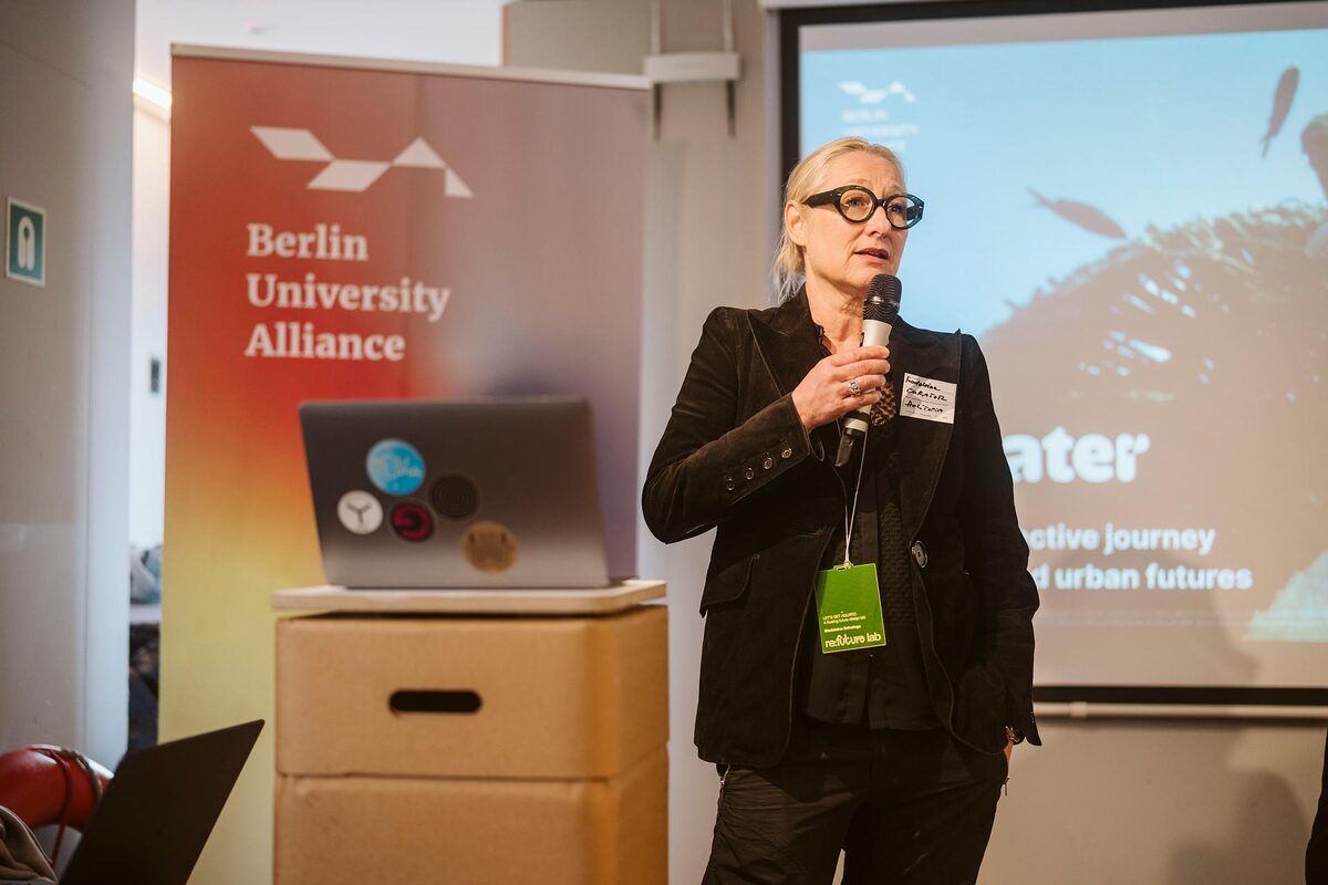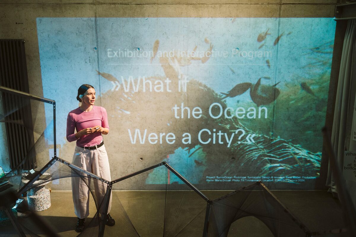Am Samstag, den 3. Mai, fand der Auftakt des zweitägigen ON WATER | PARCOURS unter dem Titel „What if the Ocean Were a City?“ im re:future lab in Oberschöneweide statt. In Vorträgen, Gesprächen und Installationen wurden erste Impulse zur Frage gesetzt, wie aquatische Zukünfte und urbane Räume neu gedacht werden können. Dabei diente das Werk „Syntopolis“ – ein Prototyp für ein künstliches Riff der Designforscherin Rasa Weber – als Ausgangspunkt für die Diskussionen. Besucher*innen konnten das Riff aus nächster Nähe betrachten, sich mit Expert*innen austauschen und über die Schnittstellen von Design, Ökologie und Stadtentwicklung in geführten Touren und einem Workshop mit der Designerin ins Gespräch kommen.