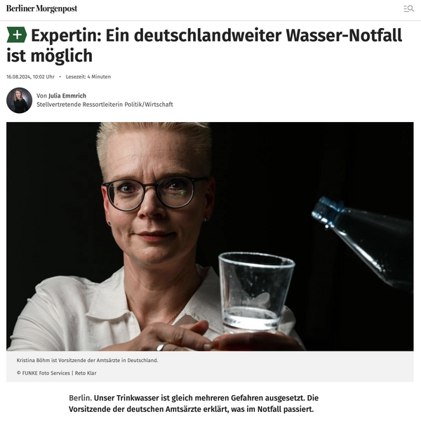 Anlässlich des Weltwassertages 2025 veröffentlichte das Amt für Statistik Berlin-Brandenburg Daten zum Wasserverbrauch in der Region, die einen erhöhten Trinkwasserverbrauch belegen. Laut Statistikamt werden 44,4 % des Berliner Trinkwassers aus Grundwasser gewonnen, 55,6 % aus Uferfiltrat aus Spree und Havel. Berliner Medien veröffentlichen immer wieder Meinungen von Expert:innen zum Thema Wasserversorgung in Krisenzeiten, dabei wird auch teilweise vor Trinkwasser-Notständen gewarnt.